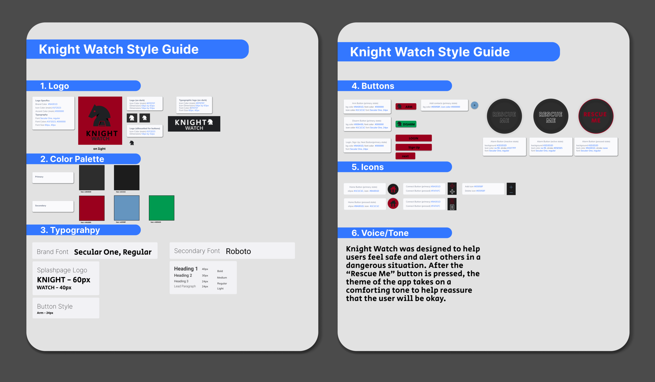 With the final mobile and watch prototypes, I also developed a coded version. All of the features have not been coded, but will be added and refined in the future. To see the Github coded version of Knight Watch, click here.