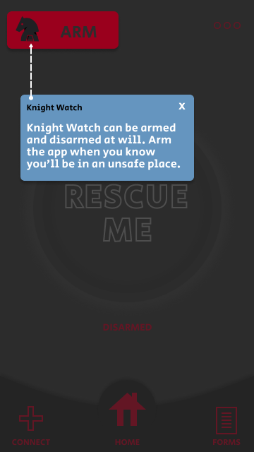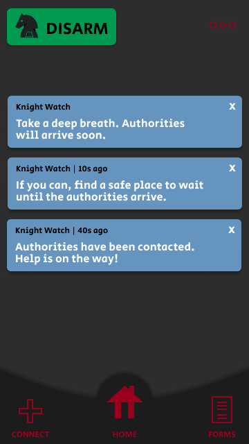 Knight Watch was designed to provide users a quick way to alert authorities and close contacts in emergency situations while also granting them a sense of security. How might we provide our users with a reliable and quick application that successfully alerts the authorities in times of danger and also provides them a sense of security?