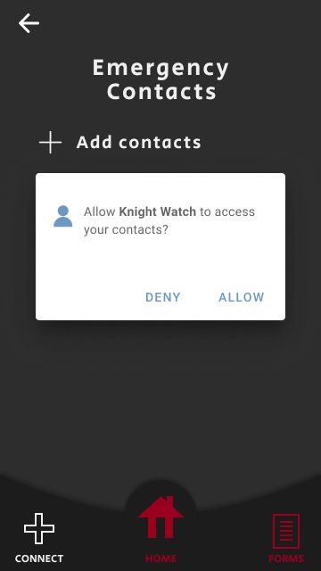 Notification that pops up asking user if Knight Watch can have access to Address Book